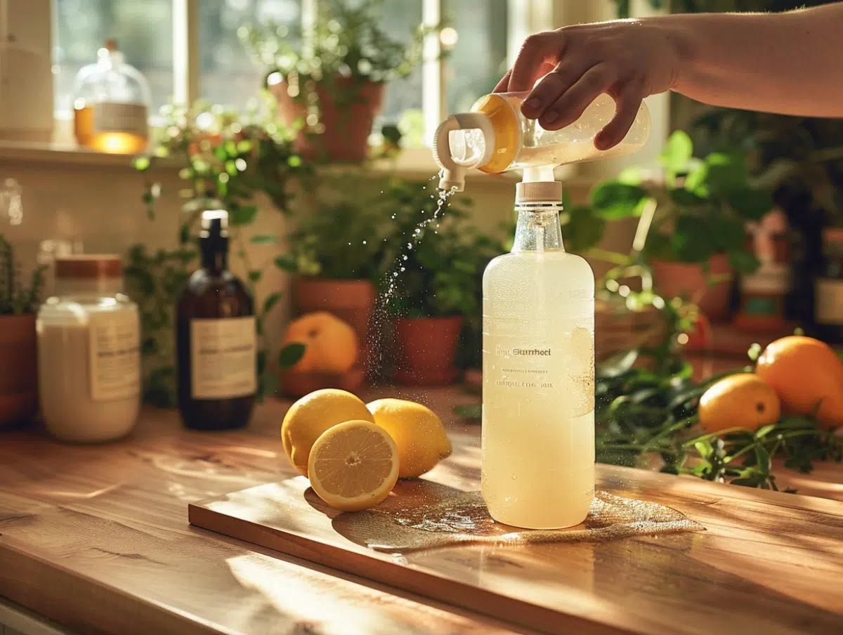 Pour une version hivernale, ajoutez 100 ml d’alcool isopropylique ou de vodka. Cela empêche la solution de geler par temps froid. Vous pouvez aussi ajouter le jus d’un citron entier pour renforcer l’effet dégraissant et laisser un parfum frais.