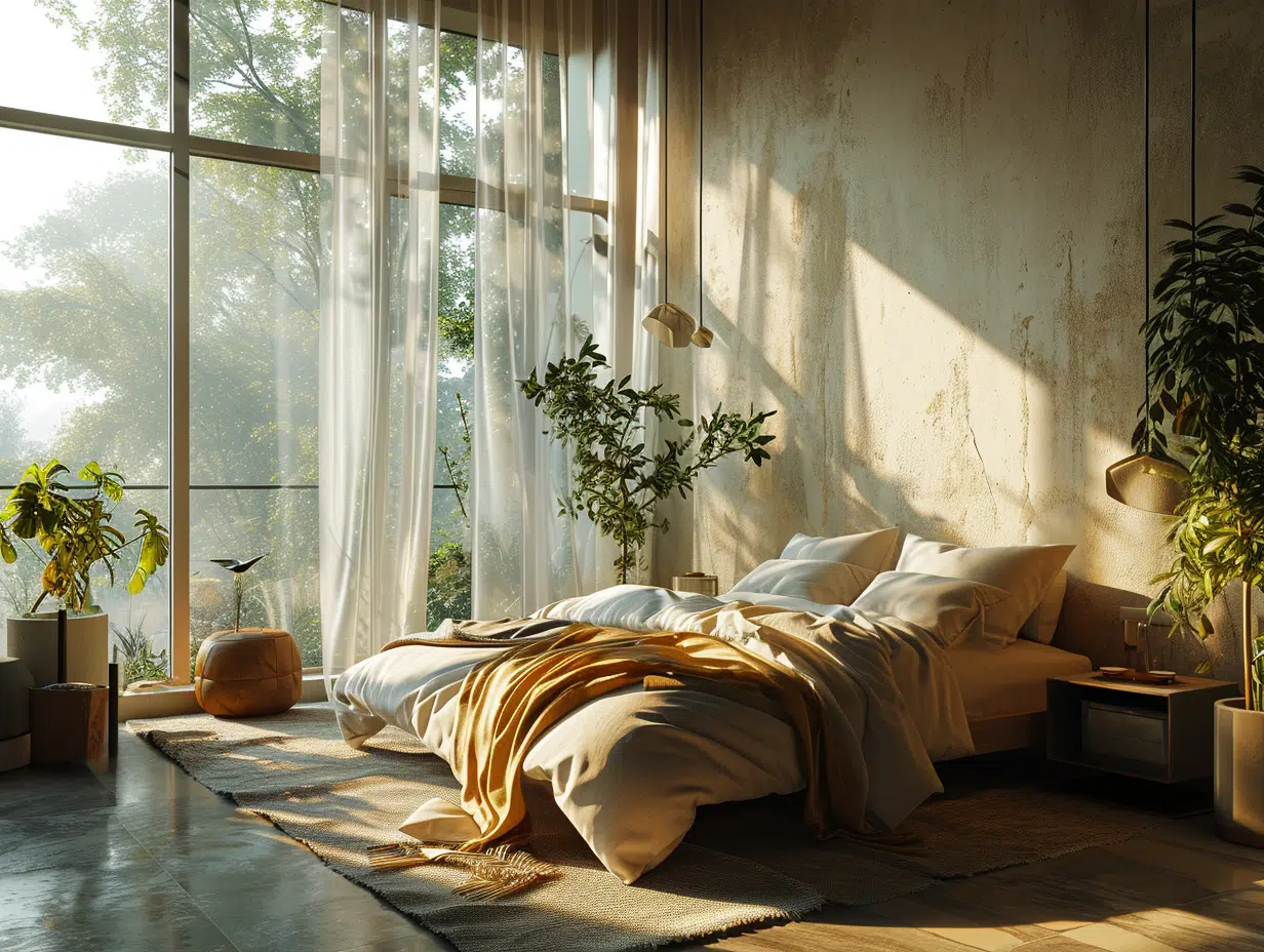 La luminosité joue un rôle déterminant dans la perception des couleurs. Une chambre bien éclairée par la lumière naturelle offre davantage de liberté dans le choix des teintes, permettant d’opter pour des couleurs plus sombres sans craindre d’assombrir l’espace. À l’inverse, dans les pièces plus sombres, privilégiez des couleurs claires et lumineuses pour agrandir visuellement l’espace et capter la lumière.