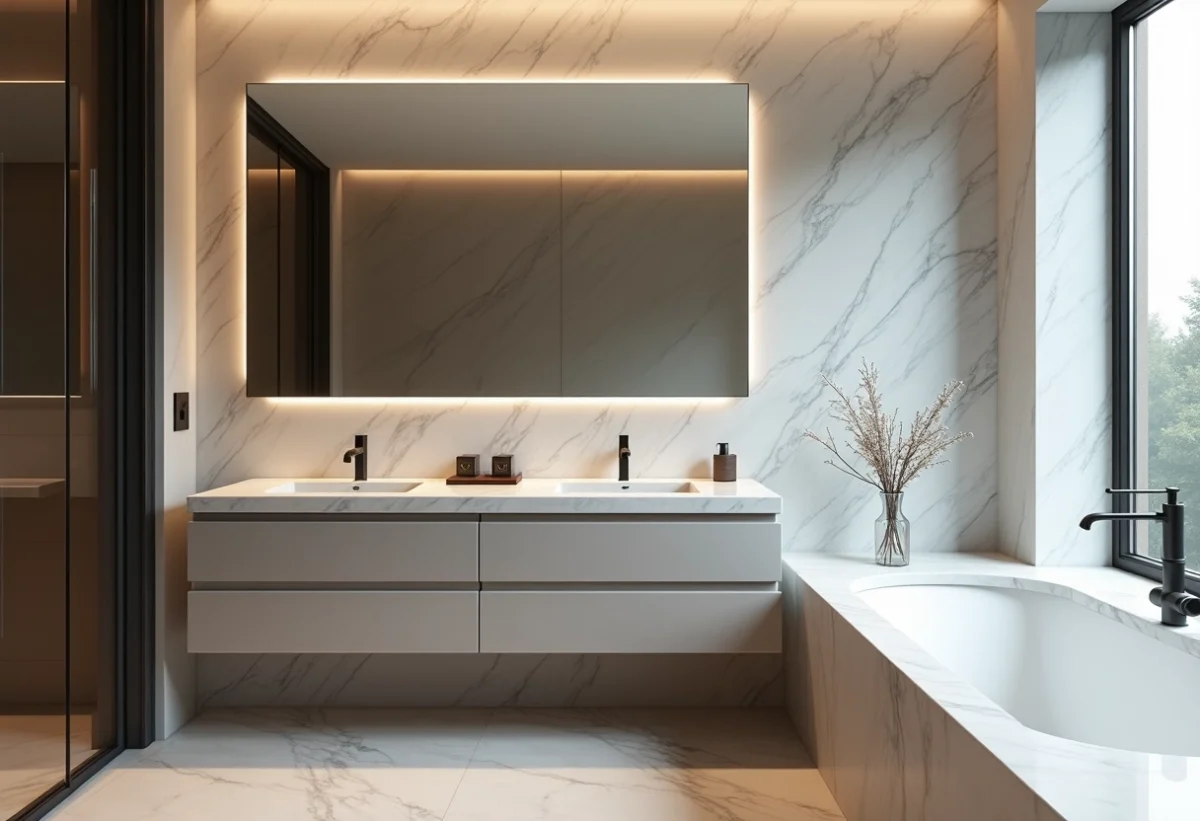- Matériaux durables : marbre, céramique, résine